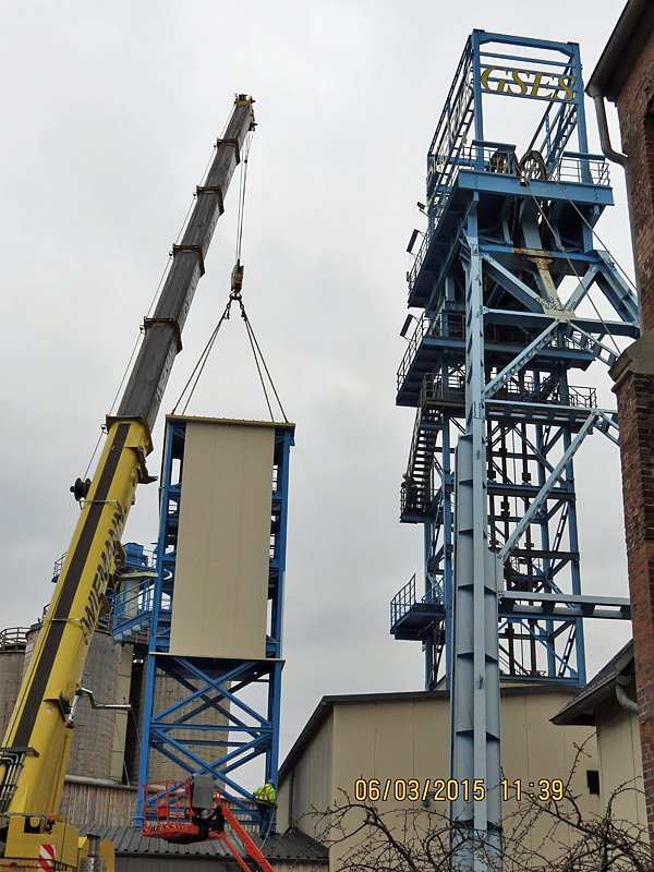 Zur Zeit laufen die Vorbereitungsarbeit am Schacht I um am Montag eine neue Seilfahrtsbrücke zu installieren.