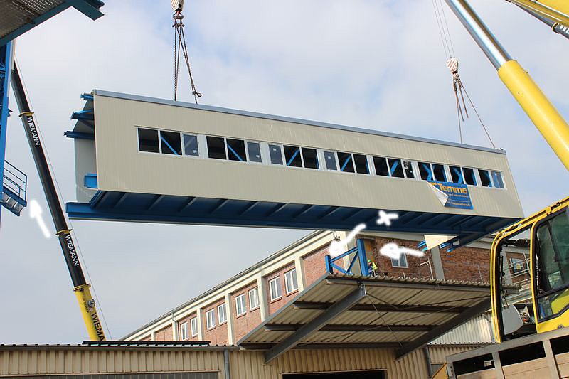 Ein zweites 15 m langes Stück soll am kommenden Mittwoch montiert werden. Die Teile wurden beim Hersteller, der Temme Stahl- und Industriebau Bad Lauchstedt vormontiert. Weitere Montagearbeiten gab es nach dem Antransport hier vor Ort.
