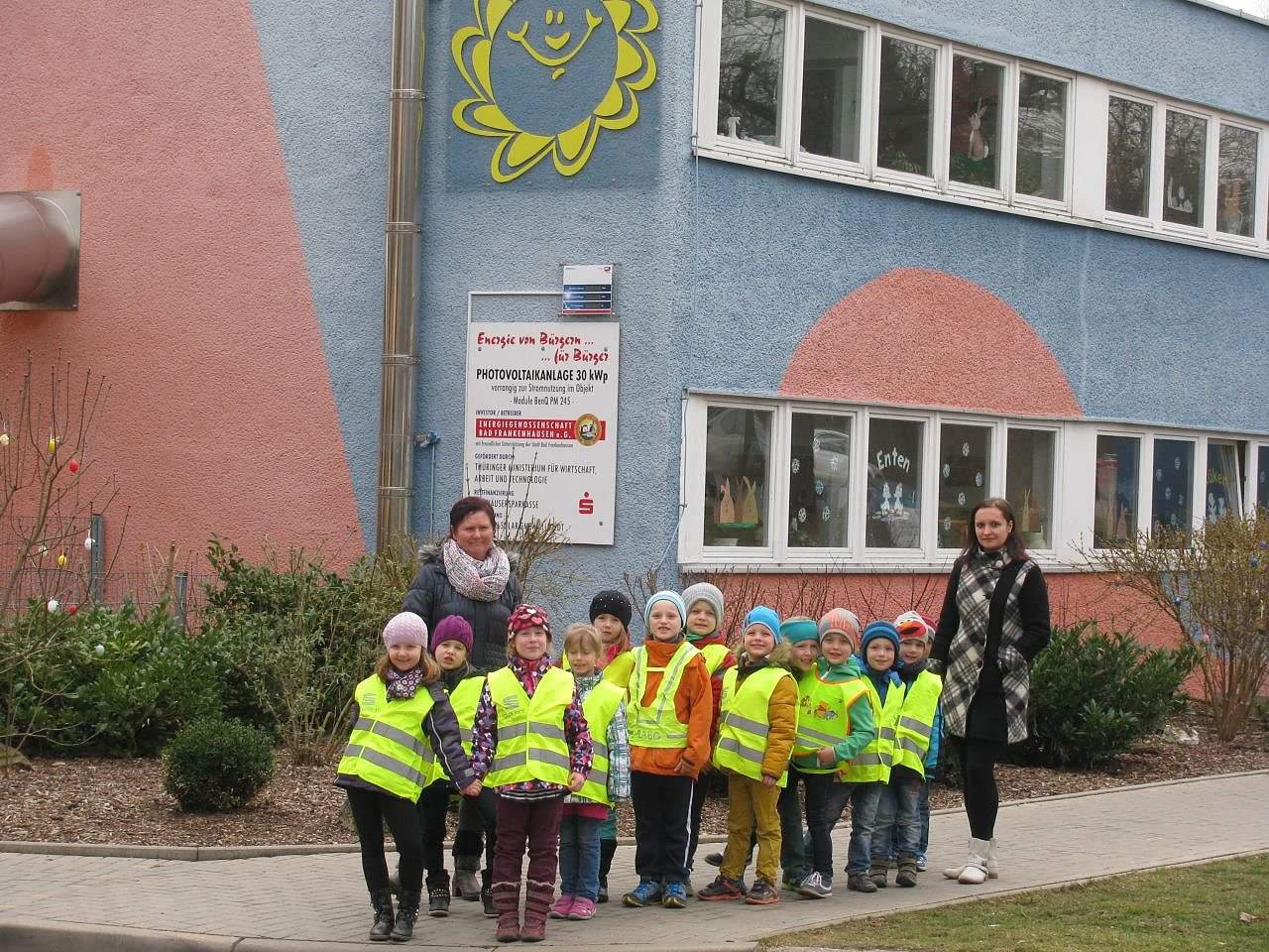 Dazu bekamen die Kinder der Gruppen der Enten, Füchse und Zwerge gelben Sicherheitswesten.