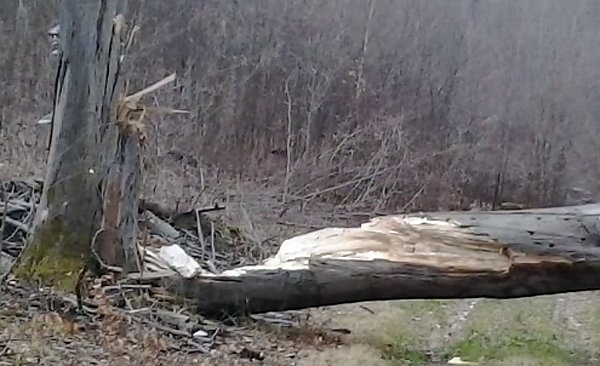 Zumindest war es nicht der einzige Baum. Den hier hat er gar mit samt Wurzel rausgerissen.