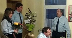 Bei Überreichung von Blumen, Geschenken und anderen Dankesworten an Herrn Schlücke blieb fast kein Auge trocken. Die Bürgermeisterin Karin Klimek nahm nicht an dieser Zeremonie mit teil, sie ließ sich schriftlich entschuldigen.