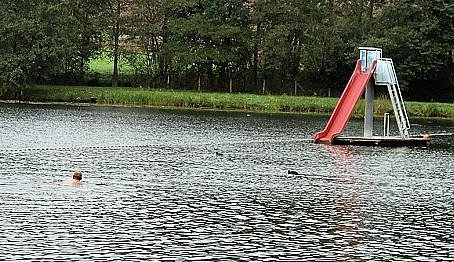Passend zum Wetter erreichte kn heute der Termin für das Anbaden am Bebraer Teich. Und kn kann beruhigen, es schwimmen keine Eisschollen auf dem Teich...