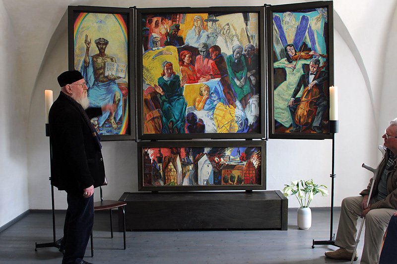 Prof. Ronald Paris bezeichnete sein Werk selbst als Verständigungsmittel zu Toleranz in allen Glaubensrichtungen. Der Künstler dankte Helmut Köhler, dass er die Möglichkeit der Aufstllung des Altarbildes erhielt und Michael Kraffzick der dem Werk mit seinem Holzrahmen aus Eiche den nötigen Rahmen gab.