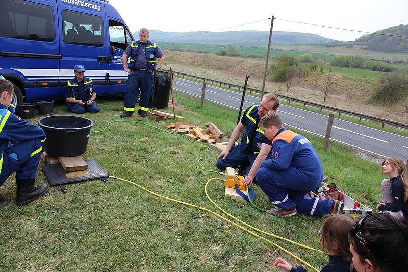 Ganz so schlimm war es bei der Übung nicht, aber wie groß eine Flamme bei einem Fettbrand werden kann, erstaunte die Jugendlichen dann doch. Für Sie dabei war kn bei dem gemeinsamen Ausbildungstag von DRK, THW und den Freiwilligen Feuerwehren der Stadt Sondershausen...