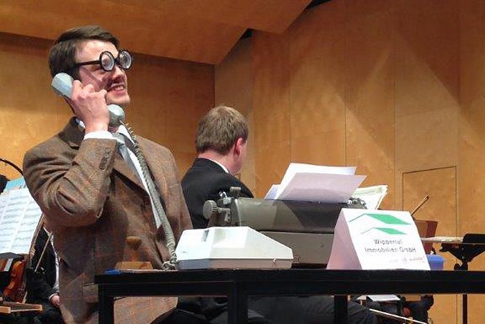 Beim Konzert des Schlagzeugers Stefan Landes in der Cruciskirche hatte er schon sein musikalisches Können gezeigt (kn berichtete). Gestern zeigte er auch sein komödiantisches Talent in einem Sketch. Wer kennt nicht Leroy Anderson mit seinem "The type-writer". Landes lehnte sich in seinem Sketch diesem Thema an und gab sich als Mitarbeiter der Immobilien-Wippertal aus, sehr zum Vergnügen der Zuschauer.