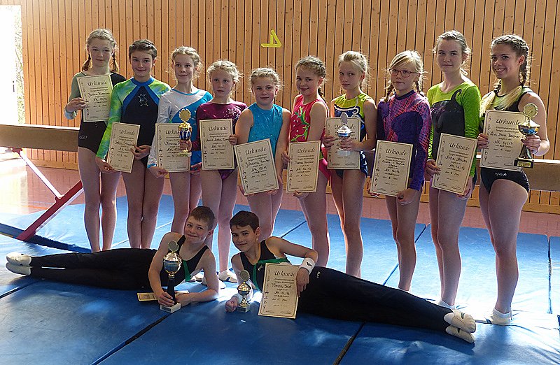 In den Altersklassen 10/11 und ab 12 Jahren wurde im männlichen und weiblichen Bereich um die begehrten Wanderpokale geturnt. Vom SV Glückauf waren insgesamt 10 Kinder gemeldet!