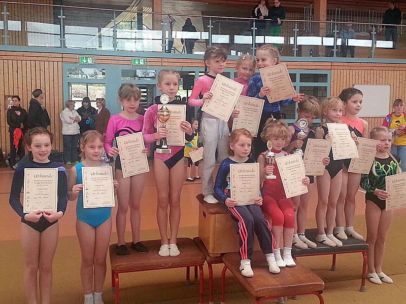 Aus Artern, Leinefelde, Dingelstädt und Sondershausen kamen die Sportler, insgesamt waren 38 Kinder im Starterfeld. In den Leistungsklassen werden Pflichtübungen geturnt die in den verschiedenen Altersklassen immer anspruchsvoller werden.