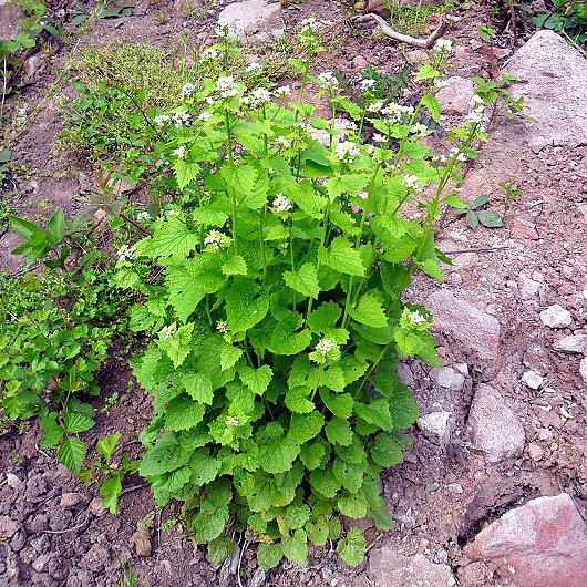 Auf den ersten Wanderungen am 12. und 25. April nahmen insgesamt 20 Interessierte teil und waren überrascht was man alles nutzen kann aus der Natur.Sauerampfer, Knoblauchrauke (Foto), Brennnessel und Labkraut, Birkenblätter und Veilchen sind essbar und wurden auf frischen Butterbrothäppchen gekostet.