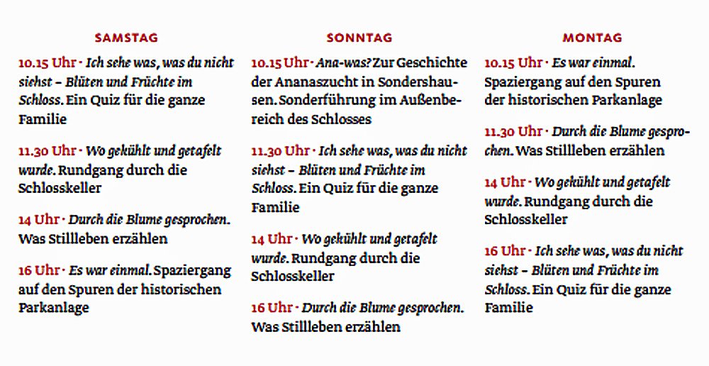 Unter http://www.schloessertage.de/fileadmin/website2/media/TST_Programmheft_2015_v6.pdf finden Sie das Programm für die weiteren beteiligten Schlösser in Thüringen.