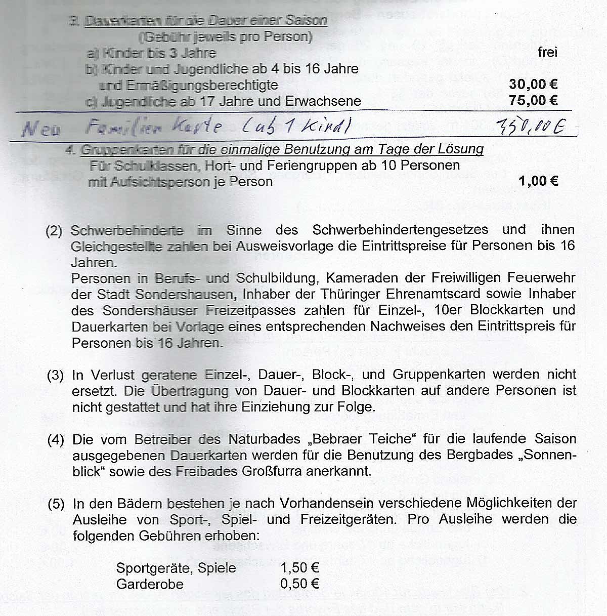 In der Sitzung des Stadtrats gestern in Sondershausen wurden die bereits im Vorfeld der Stadtratssitzung angewendete Eintrittspreis in die Bäder der Stadt Sondershausen "legalisiert"...