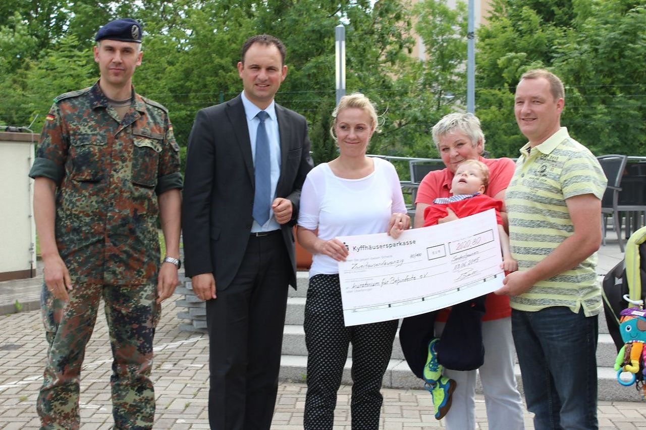 Die Familie des kleinen Ludwig erhielt heute einen Scheck in Höhe von 2.020,80 Euro. Den Scheck übergaben Geschäftsführer Andreas Peter von der Autohaus Peter-Gruppe und Oberstleutnant Ulrich Rölle.