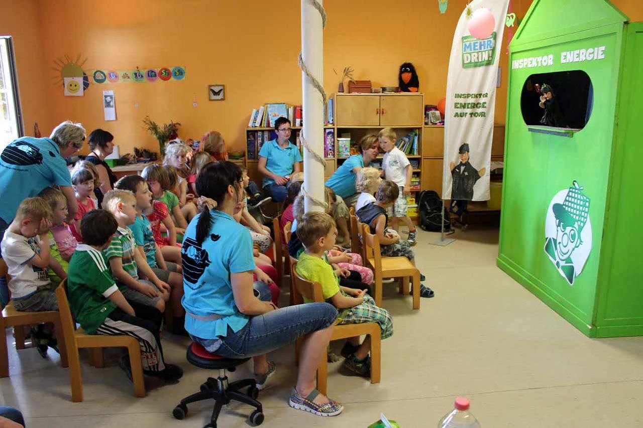 Der Auftritt von Inspektor Energie begeisterte gestern die Kinder in der integrativen Kindereinrichtung in Stocksen. Mit einem Puppenspiel wurden die Kinder für die Themen Energie und Umweltschutz vertraut gemacht.