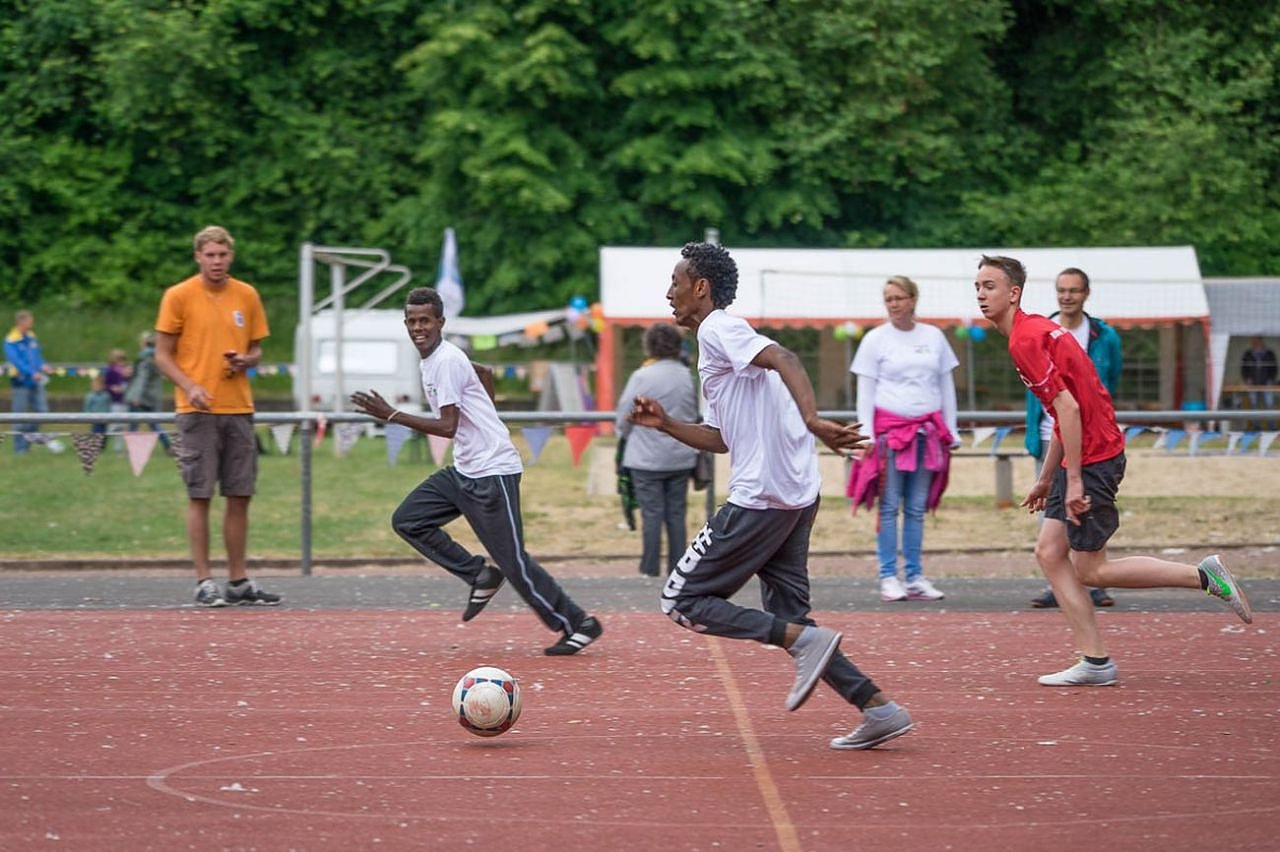 Im Anschluss daran ging es auf dem Beachplatz weiter. Hier spielten drei Teams um den 1. Platz und schenkten sich nichts. Spannender Freizeit-Volleyball, bei dem sich die ausrichtende Mannschaft Gardoffelsalaad im letzten Satz noch auf den zweiten Platz vorschlagen konnte. Allerdings mussten sie sich den Jungs aus Eritrea geschlagen geben, denn die Mannschaft von Sondershausen ist bunt konnte auch hier vollends überzeugen und holte sich den zweiten Pokal des Tages.
