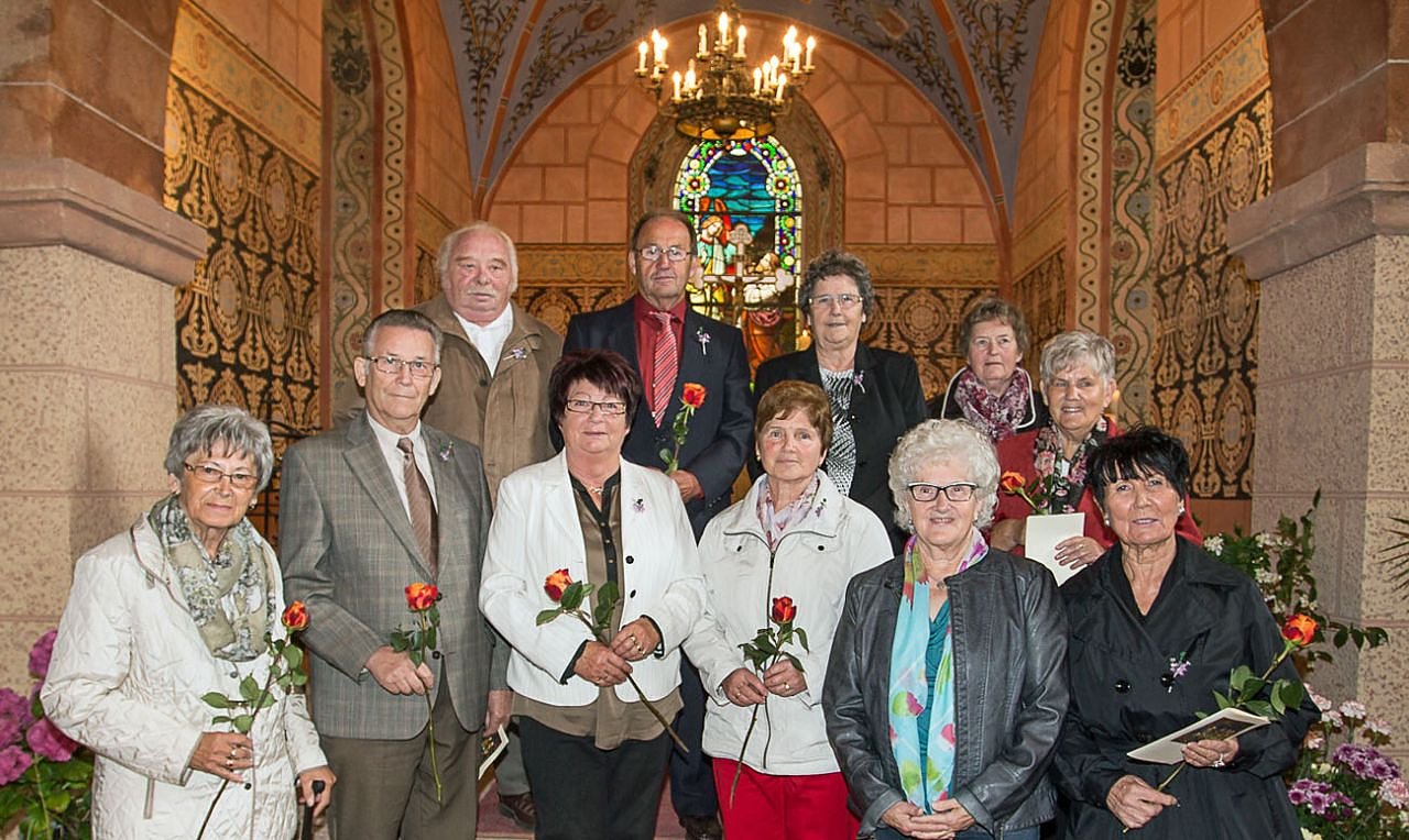 In einem festlichen Gottesdienst segnete Pfarrer Behr die Jubilare und überreichte ihnen die Ehrenurkunde.