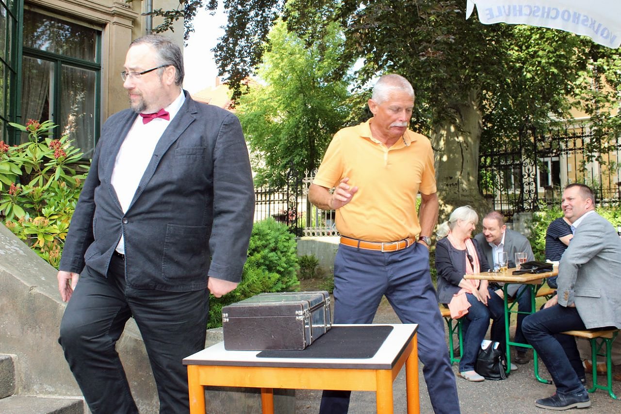 Im Kulturprogramm trat Notar Ingo Laubvogel als Zauberer Dozano auf, der als erstes "Opfer" Wolfgang Volz auswählte, der bei der Zauberei herhalten musste. Nicht ohne Grund, wurde Wolfgang Volz ausgewählt, denn er war schon 20 Jahre bei der VHS und geht nun in den verdienten Ruhe stand. Die offizielle Verabschiedung war allerdings bereits zu einem früheren Zeitpunkt.