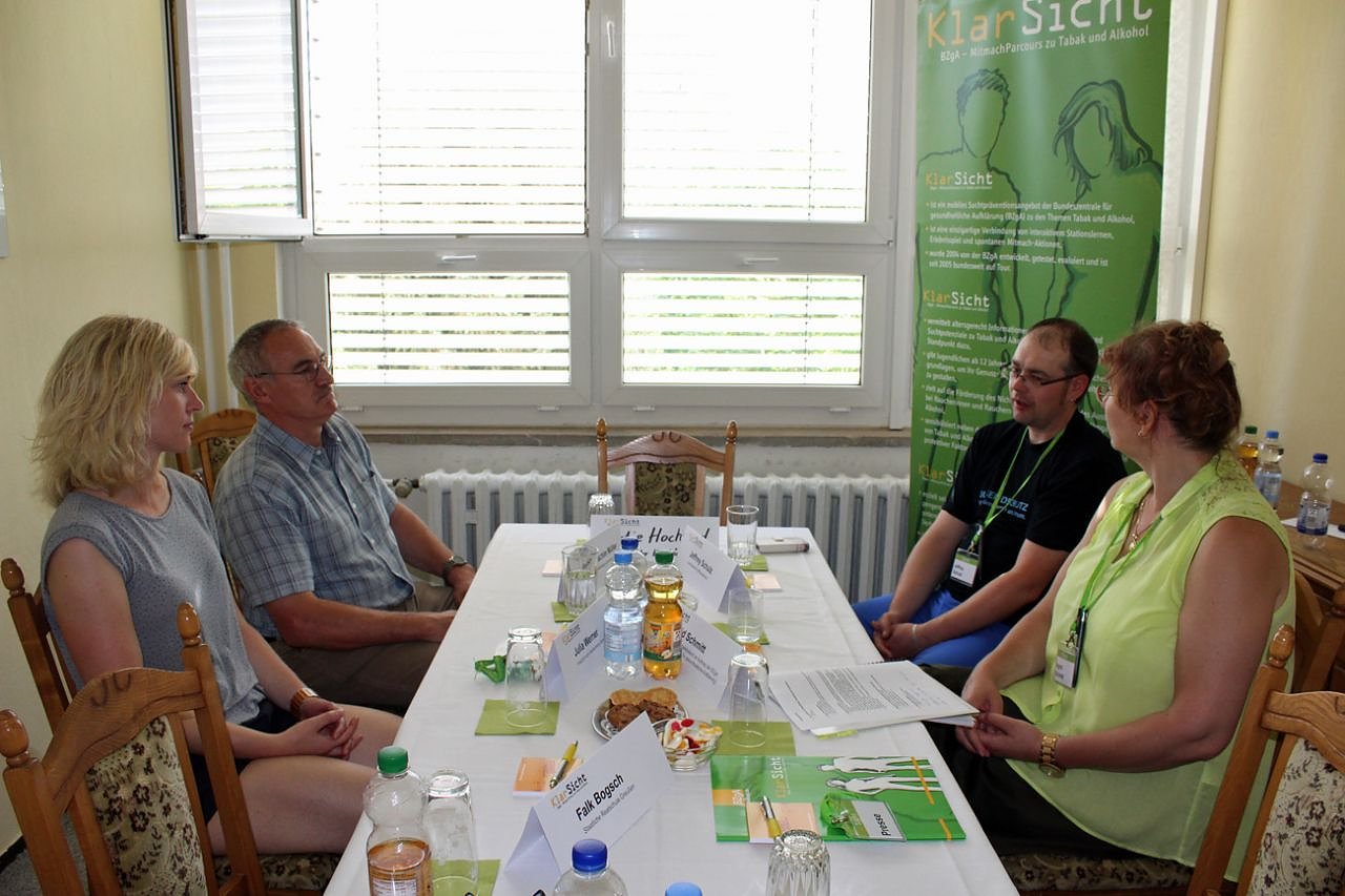 Zum Konzept des KlarSicht-Mitmach-Parcours erläutert Ingrid Schmitt "Der Mitmach-Parcours der BZgA ist ein auf Jugendliche zugeschnittenes Präventionsangebot. Schülerinnen und Schüler werden an den Lernstationen des Parcours selbst aktiv und setzen sich in Rollenspielen und Diskussionen mit den Themen Alkohol und Tabak auseinander. So lernen sie gleichzeitig, ihr eigenes Konsumverhalten zu reflektieren."