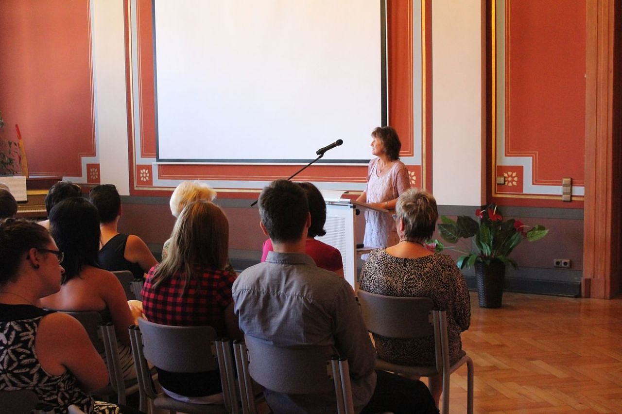 Carmen Lederer, Stellvertretende Schulleiterin konnte zahlreiche Lehrerkräfte, Eltern und Vertreter der Ausbildungsbetriebe begrüßen. Der Wunsch von Lederer, allen Teilnehmern solle der Tag in guter Erinnerung bleiben weshalb man die ganze Übergabe in der festlichen Aula machte.