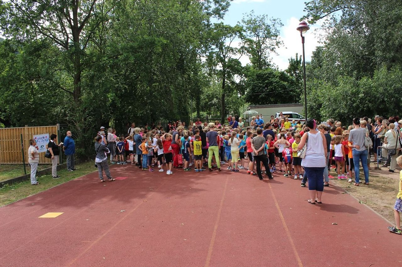 Und es wurde gelaufen was das Zeug hielt. Als erste starteten die Kinder der 1. Klasse. Sie hatten zum Beispiel 15 Minuten Zeit eine 200 Meter lange Runde zu laufen. Für jede Runde gab es von einem Sponsor einen bestimmten Betrag.