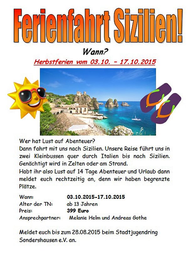 In Sondershausen wird im August das Stadtarchiv zeitweise schließen und der Stadtjugendring bietet eine Abenteuerreise nach Sizilien an...