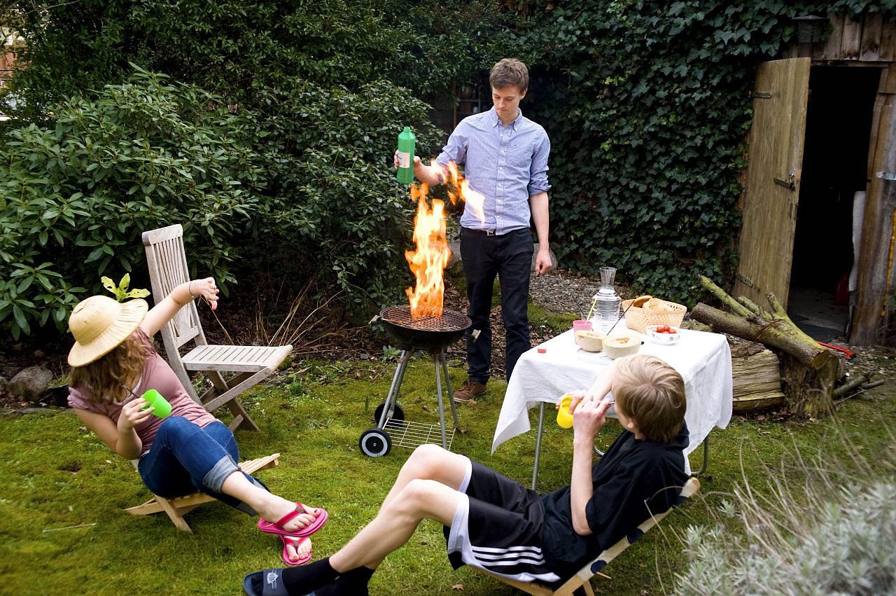 Egal, wie hungrig die Grillgesellschaft aufeinandertrifft - vom Gebrauch flüssiger Brandbeschleuniger sollte sie absehen. Benzin oder Spiritus verbrennen beim Anzünden des Grills explosionsartig und können meterhohe Stichflammen verursachen. Obwohl verboten, werden diese Substanzen häufig genutzt und sind die Hauptursache für Unfälle...