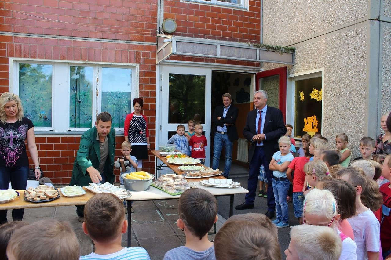 Gemeinsam mit der Tafel Bad Frankenhausen nahm er bei der Ausgabe des gesunden Frühstücks in der Grundschule "Am Tischplatt" teil. Ziel war, mit den Kindern und Mitarbeitern ins Gespräch kommen.