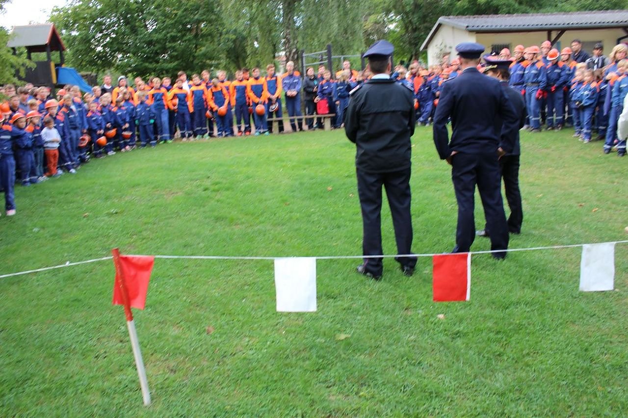 Rund 160 Teilnehmerinnen und Teilnehmer in 20 Mannschaften wollen beste Jugendfeuerwehr werden. Teilnehmen Kinder und Jugendlichen in den Altersgruppen 6-10 und 10 bis 18 Jahre.