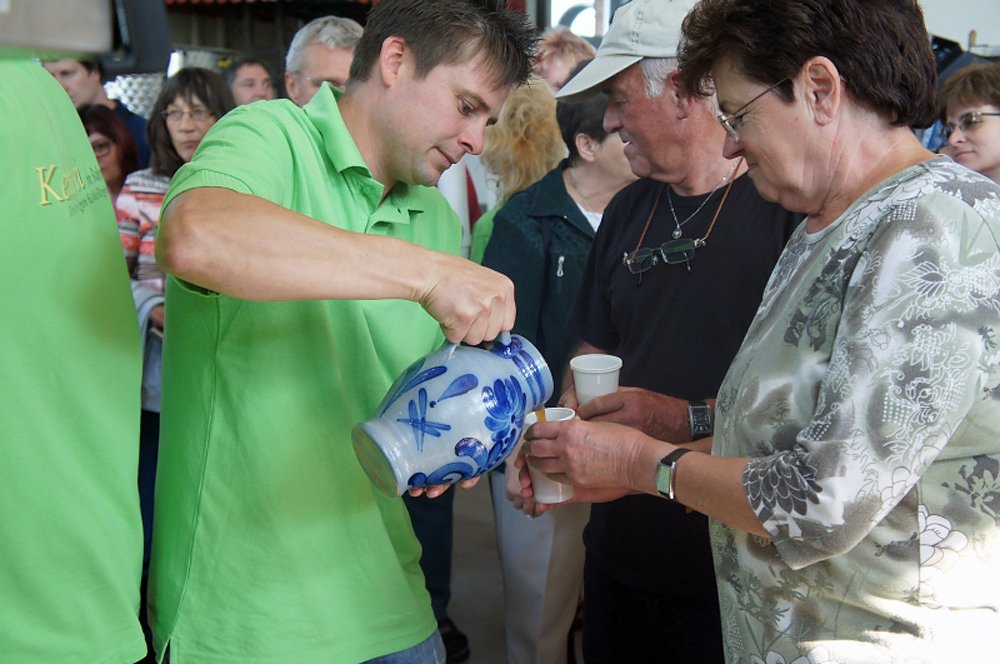 Autor: khhDie Eröffnung stieß in der Region auf großes Interesse, so dass bei strahlendem Spätsommerwetter ein großer Andrang auf dem Vorplatz und in der Kelterei herrschte. Viele waren gekommen, um die Gelegenheit wahrzunehmen, die neue Einrichtung zu besichtigen. Bei einer ausführlichen Führung erläuterte Rahaus, wie der Pressvorgang funktioniert, anschließend wurde die Presse dann in Aktion gezeigt und die Gäste konnten den ersten Saft der Kelterei gleich vor Ort probieren.