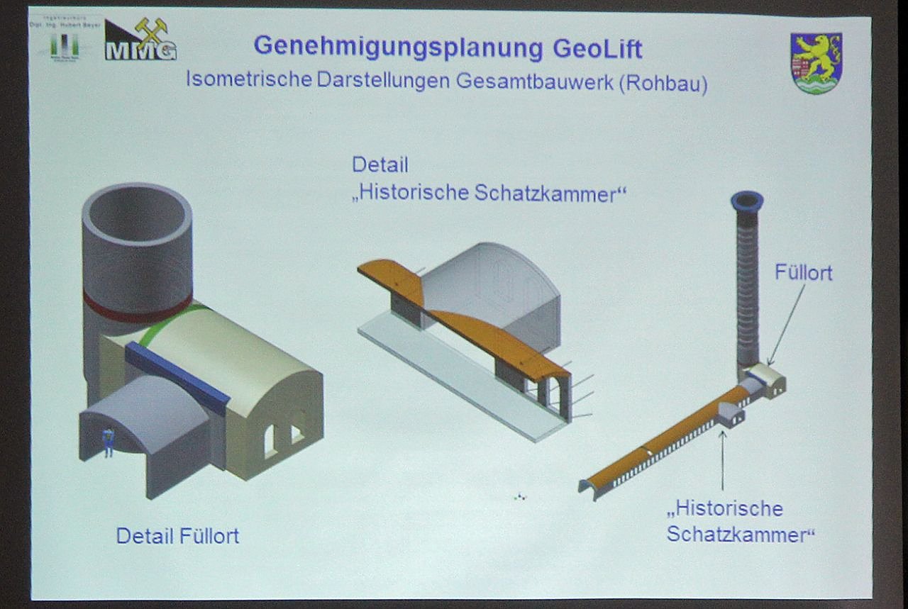 Der Lift soll rund 30 Personen fassen und wird auch behindertengerecht ausgebaut. Durch Fenster soll die Geologie des Gesteins gezeigt werden. Man hofft, dass man beim Bau Versteinerungen findet. Man würde ja gern beim Bau des Schachts den Barbarossaschatz finden, aber ob das passieren wird, ist recht unklar.