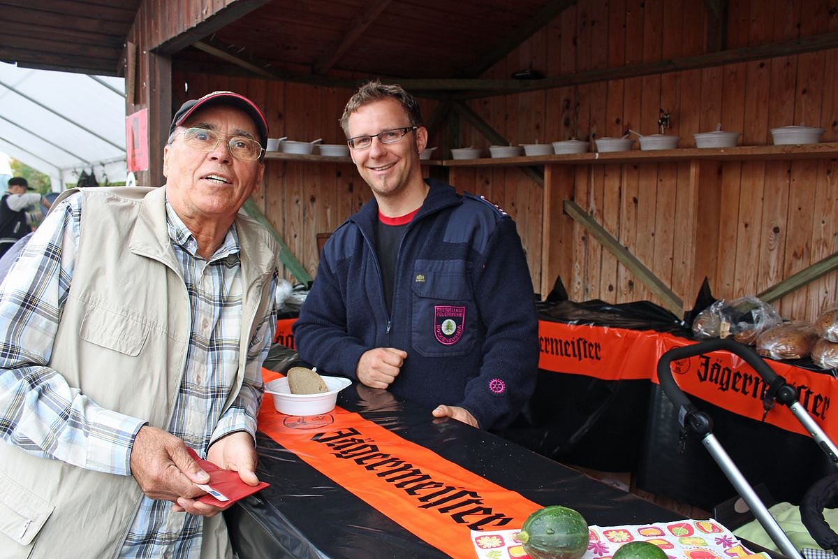 Kartoffeln in veredelter Form hat kn trotzdem noch bekommen. Hier lacht man am Stand der FFW Rockensußra, denn hier wurde eine sehr leckere Kartoffelsuppe verkauft. Danach zog kn zufrieden weiter. An anderen Ständen gab es Kartoffeln veredelt als Kartoffelsalat.