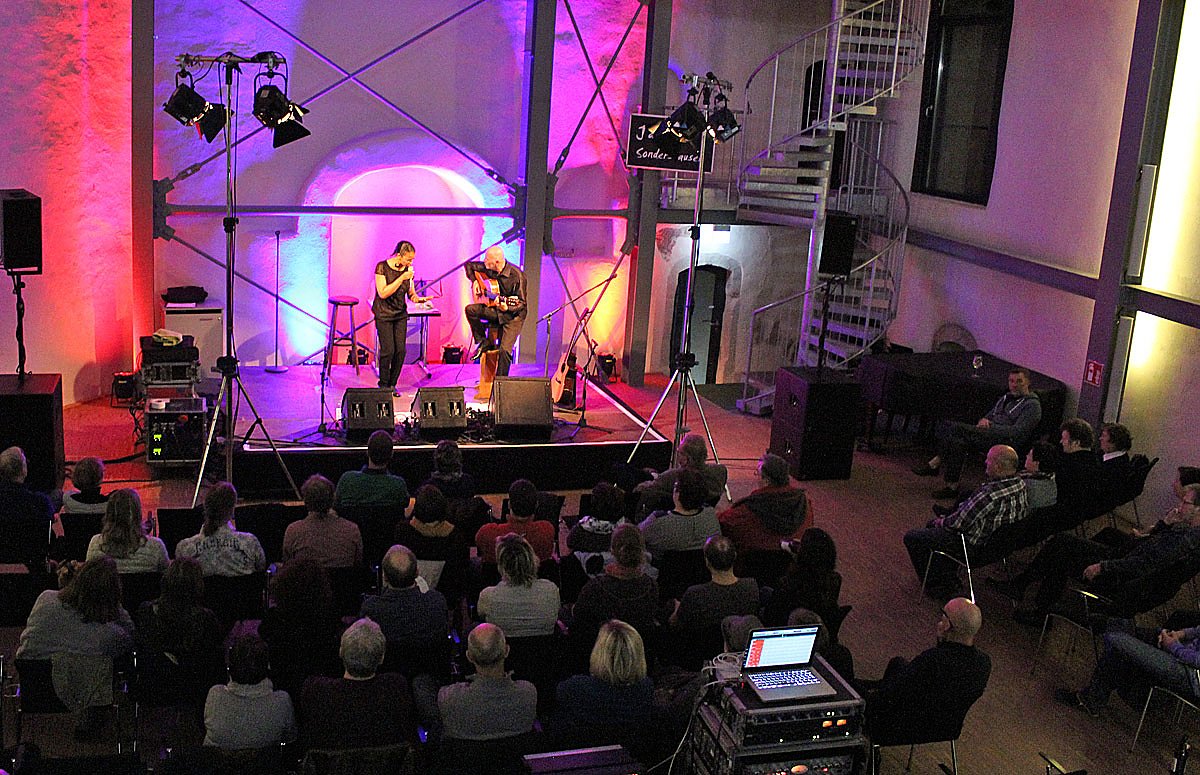 Zwei verschiedene Gitarren und eine tiefe soulige Stimme reichten um eine Stimmung in die Cruciskirche zauberten, die das Publikum hinriss.