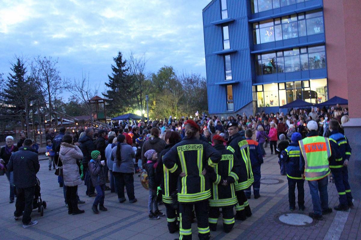 Bei rund 200 Schülerinnen und Schülern, die ihren Unterricht in der Grundschule haben, kamen bestimmt geschätzte 400 Teilnehmer zusammen, mit Eltern und Großeltern, die sich dem Lampionumzug anschlossen, der dann durch das Östertal zog, um anschließend wieder an der Schule anzukommen. Übrigens haben auch 15 Kinder und Eltern von Flüchtlingsfamilien an dem Fest teilgenommen.
