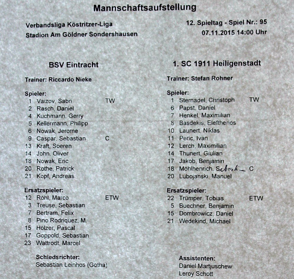 In der 77. Minute gab es gar einen Elfmeter für Heiligenstadt, der aber von Sabri Vaizov gehalten wurde. In der 80. Minute schlug Sondershausen zurück, der Ausgleich durch Sebastian Caspar.