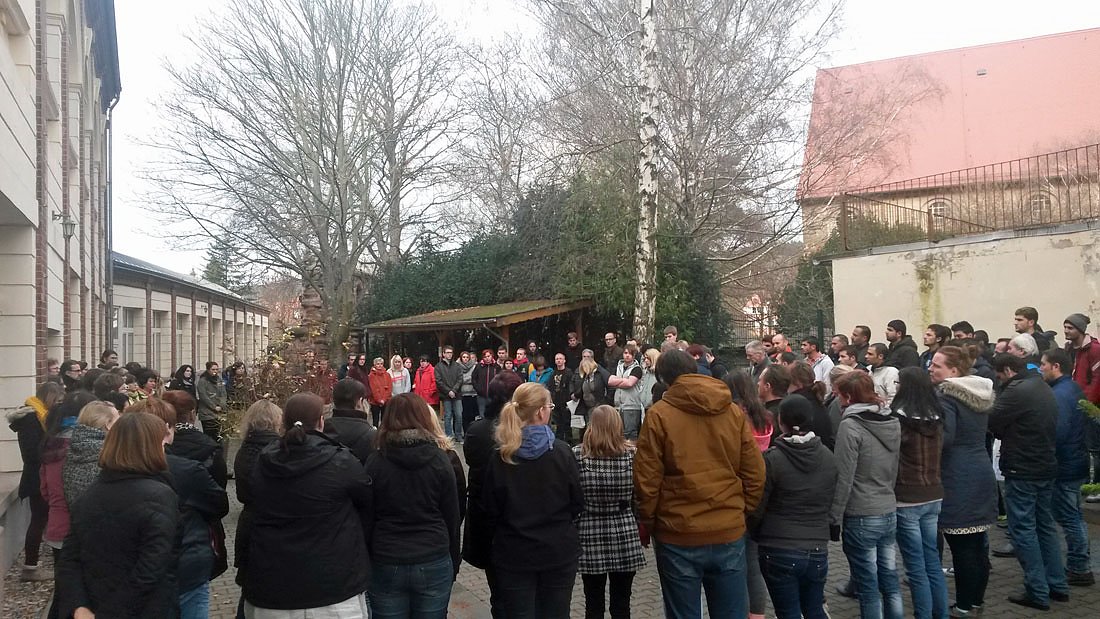 Gemeinsam gedachten wir Schüler, Lehrer, ehrenamtliche Deutschlehrer und Flüchtlinge der Opfer von Paris, Syrien und der Welt.