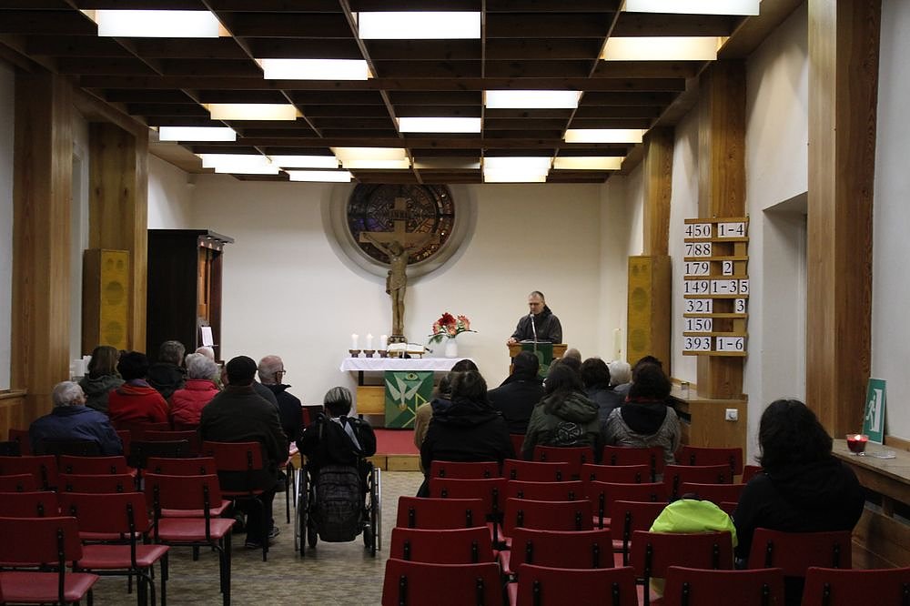 Der Gemeindesaal der Trinitatiskirche blieb dieses Mal deutlich leerer als beim letzten Friedensgebet. Pfarrer Christoph Behr führte das Friedensgebet durch.