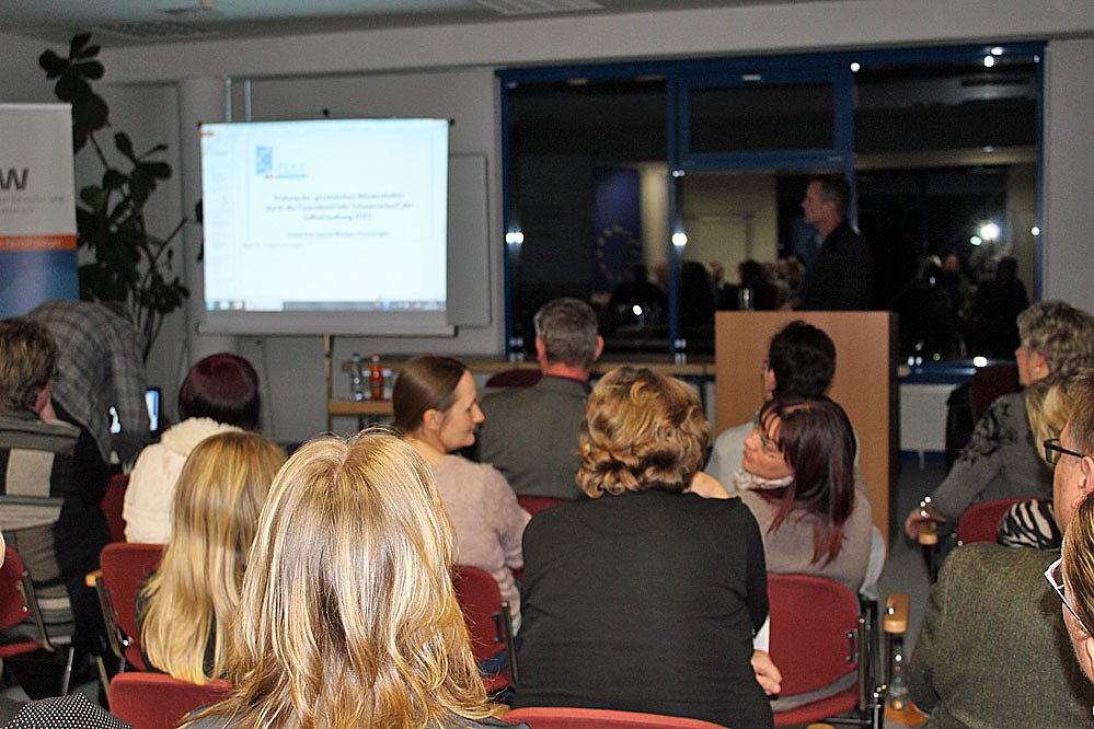 Nach dem interessanten Vortrag nutzen Unternehmer die Möglichkeit auch in Einzelgesprächen Probleme anzusprechen.