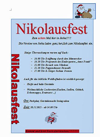 Die Vereine von Jecha laden ganz herzlich zum Nikolausfest ein. Hier kn mit den Einzelheiten