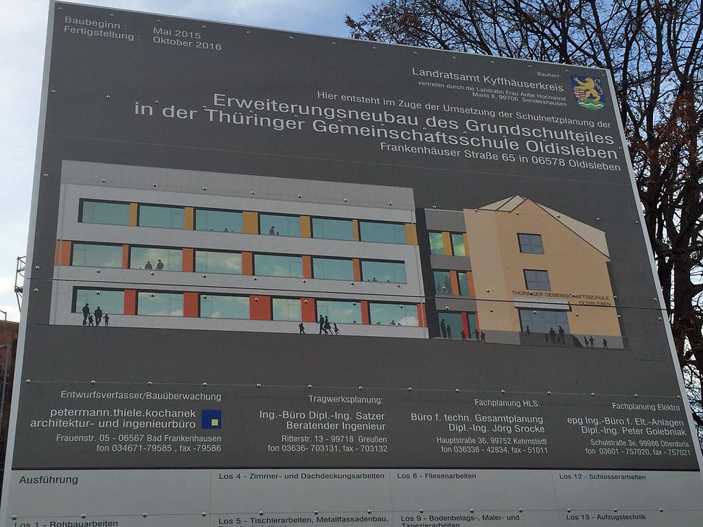Gemäß des Beschlusses des Kreistages zur Fortschreibung der Schulnetzplanung 2013-2018 wurde durch die Verwaltung des Landratsamtes des Kyffhäuserkreises die Planung einer Kapazitätserweiterung am Schulstandort Oldisleben in Auftrag gegeben.