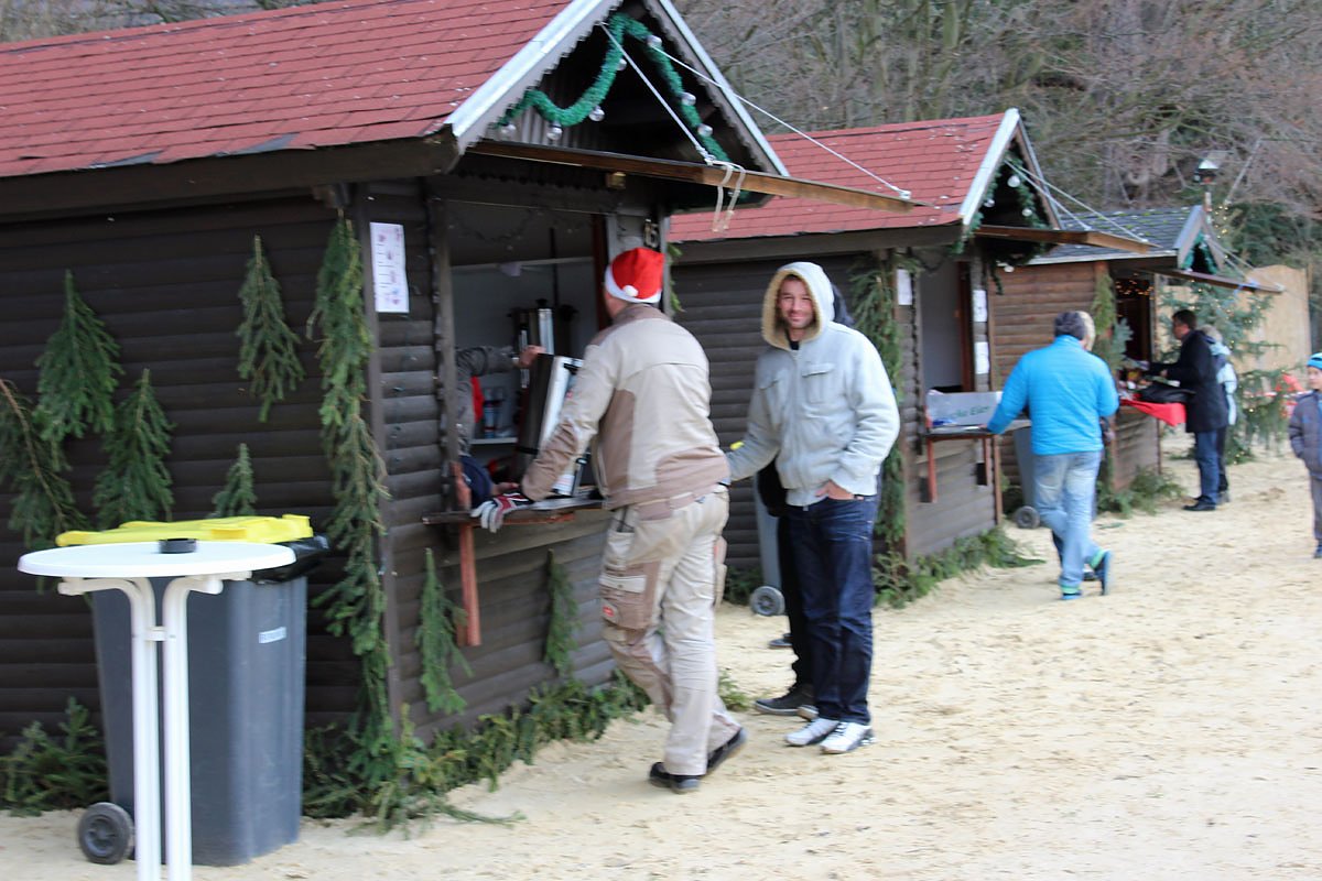 Da war es außerhalb des Wasser viel gemütlicher, denn hier gab es einen Weihnachtsmarkt, Essen und trinken.