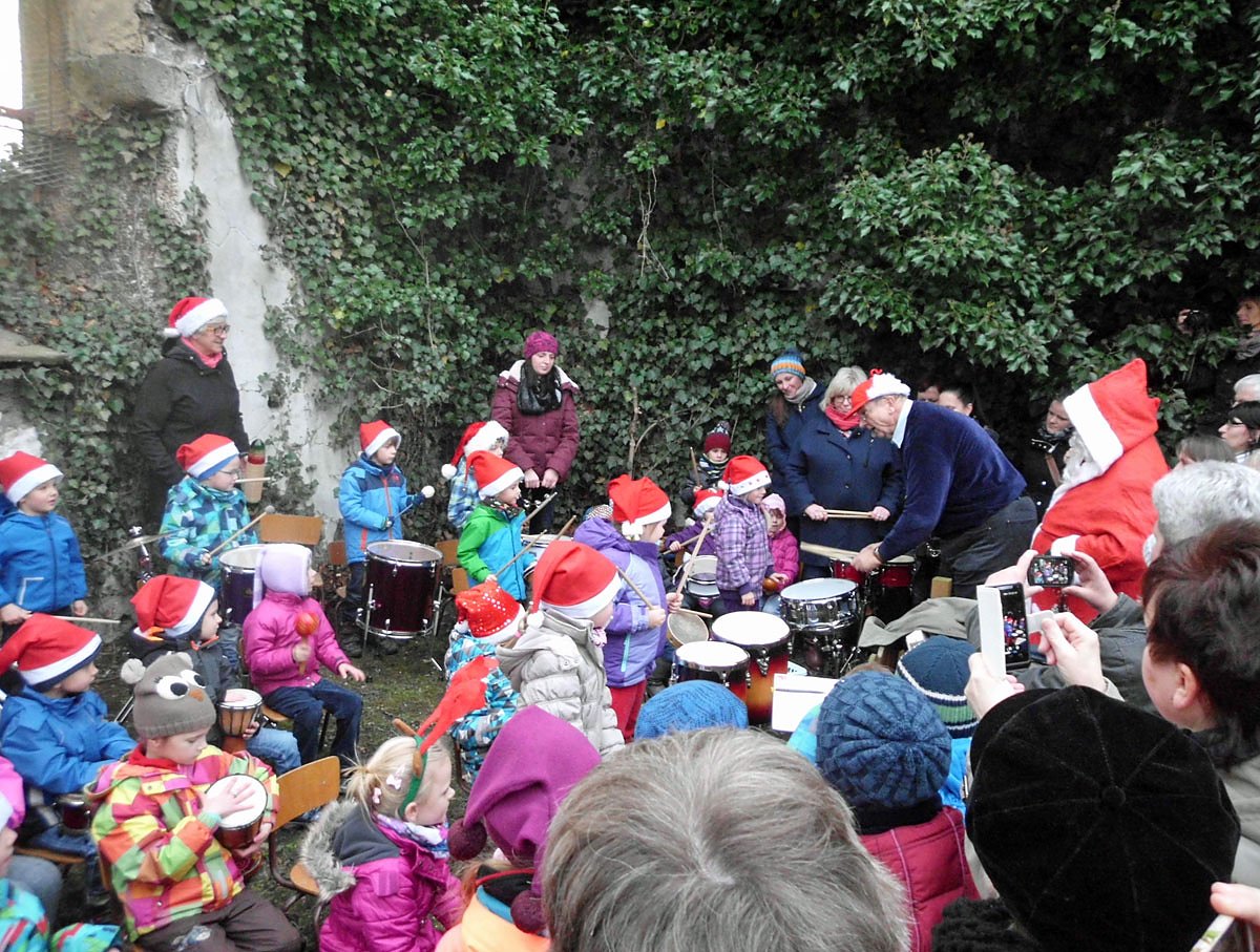 Es spielten etwa 35 Kinder aus der KITA "Wippergärtchen" unter Leitung von Herrn Jürgen Müller (LaMü) mit Unterstützung von 3 Erzieherinnen zu Weihnachten auf. Das Kirchenschiff war gut besucht. Sogar der Weihnachtsmann war unter den Gästen.