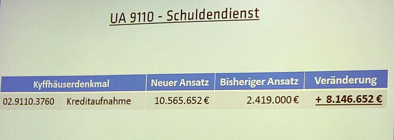 Zum Schuldendienst sagte Hochwind, da gibt es ein Vorabsprache mit dem Landesverwaltungsamt. Es musste nachgewiesen werden, dass der Kyffhäuserkreis leistungsfähig sei. Da hat man das Landesverwaltungsamt überzeugt, so Hochwind.