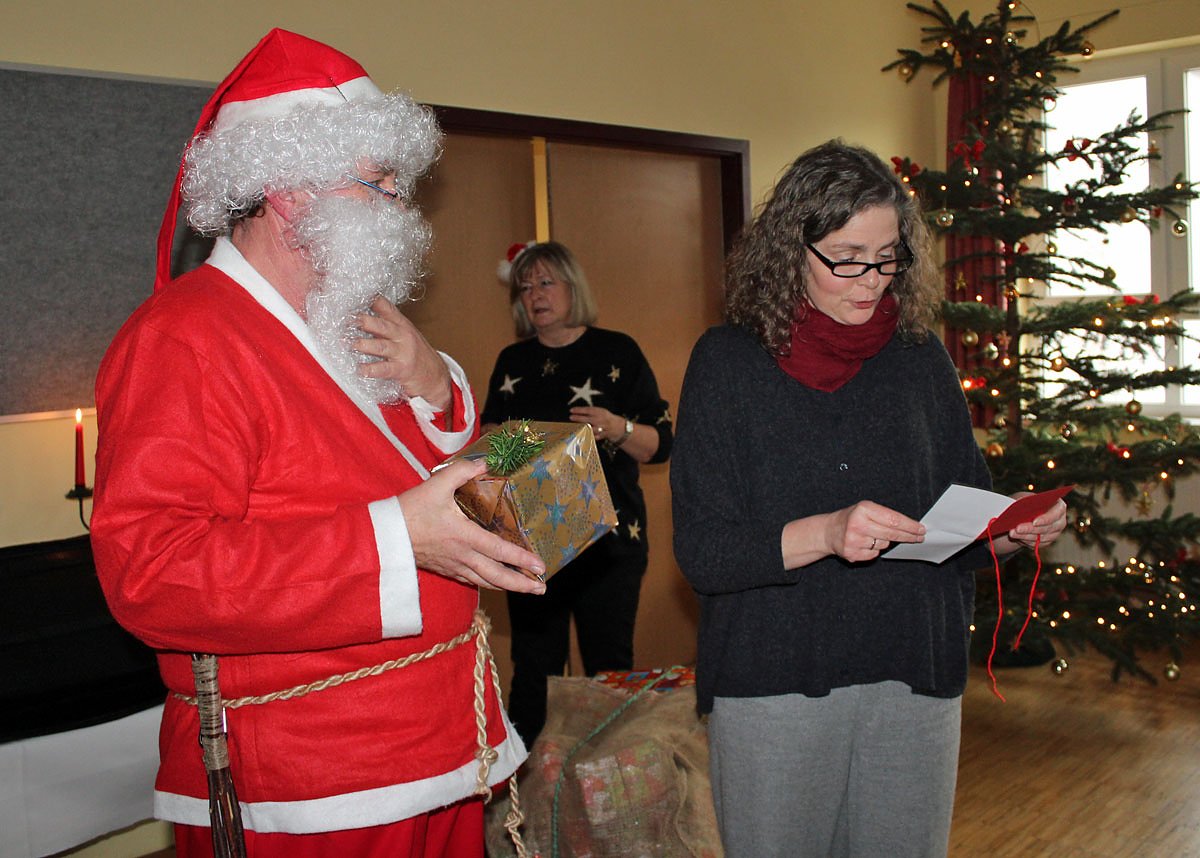 Nicht jeder musste beim Verteilen der Wichtelpakete ein Lied oder eine Gedicht aufsagen. Aber Cornelia Ketelsen hatte eine schöne Geschichte von einem Wollfaden, der dann doch noch mit seinem Licht die Welt erhellt hat.