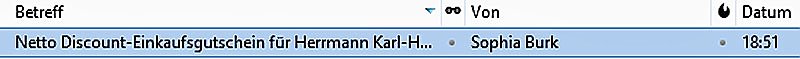 Selbst wenn Sie einen Gutschein abgebildet sehen sollten, Sie fangen sich nur einen Virus ein, der voraussichtlich Daten Ihres Rechners klaut. Wo Sie auf keinen Fall landen, ist bei Netto und Geld sehen Sie nicht. Und lassen Sie sich nicht täuschen, wenn Sie sogar mit richtigen Namen angesprochen werden.