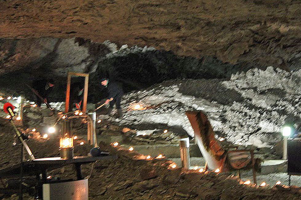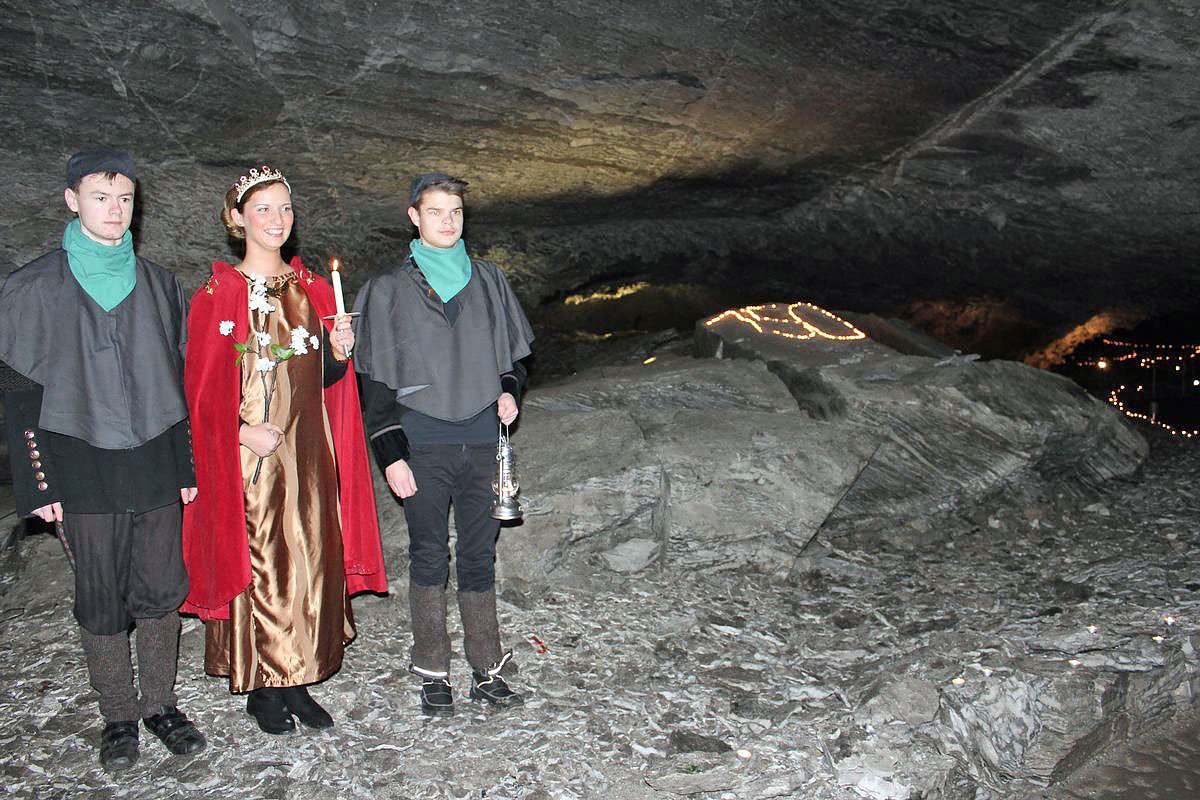 In mehreren Spielszenen wurde vom Höhlentheater Szenen nachgespielt, wie es zur Entdeckung der Höhle gekommen war, obwohl man eigentlich nach Kupferschiefer graben wollte. Apropos Höhlentheater, dass begeht in wenigen Tagen das 10 Jährige Bestehen. Mit dem Höhlentheater begann der Boom um die Mettenschicht, die es zuvor seit 1999 mit weniger Erfolg gab.