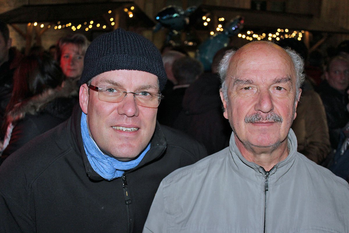 Schaus: Ich komme, wenn ich Zeit habe immer wieder gern zum Weihnachtsmarkt. Man trifft immer wieder bekannte Gesichter. Und wo traf ihn kn? Natürlich vor dem Stand des Kuratoriums für Behinderte, die wieder Glühwein für einen guten Zweck verkauften. Er war ja in der Zeit als Kommandeur auch "oberster Chef" des Kuratoriums.