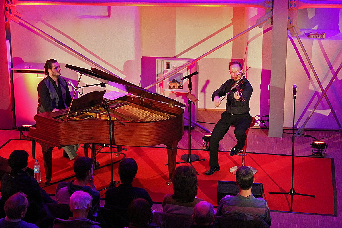Mit "Stille Nacht - Heilige Nacht" begann das Weihnachtskonzert von E-Geiger Fabian Fromm, dass er gemeinsam mit Vinzenz Heinze, vielen als Pianist der Band Annred” ein Begriff, gestaltete