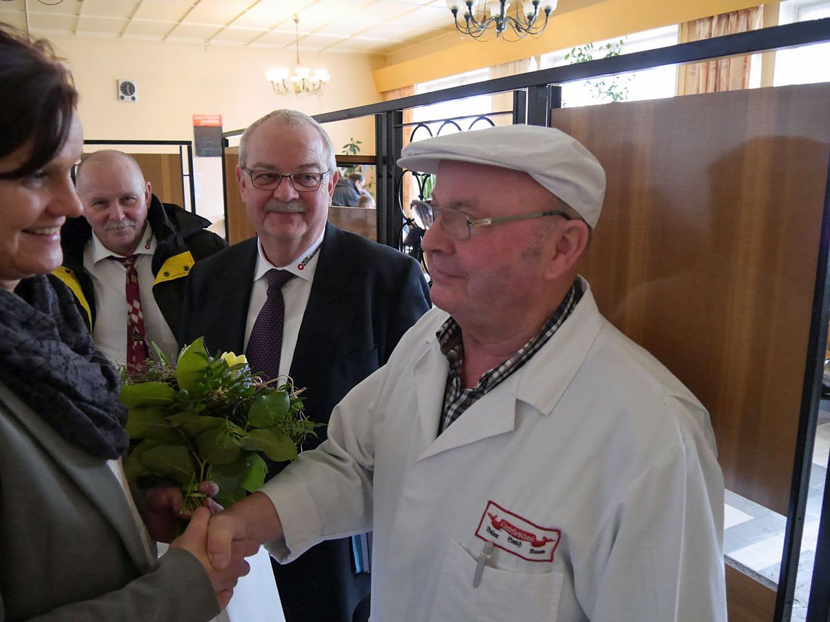 Autor: khhIm Anschluss an die Übergabe eines Audio-Guide-Systems an die Barbarossahöhle hatte die Landrätin des Kyffhäuserkreises, Frau Antje Hochwind (SPD), gestern einen weiteren angenehmen Termin. Sie gratulierte Baldur Krause aus Greußen zu 50 Jahren Fleischermeister.