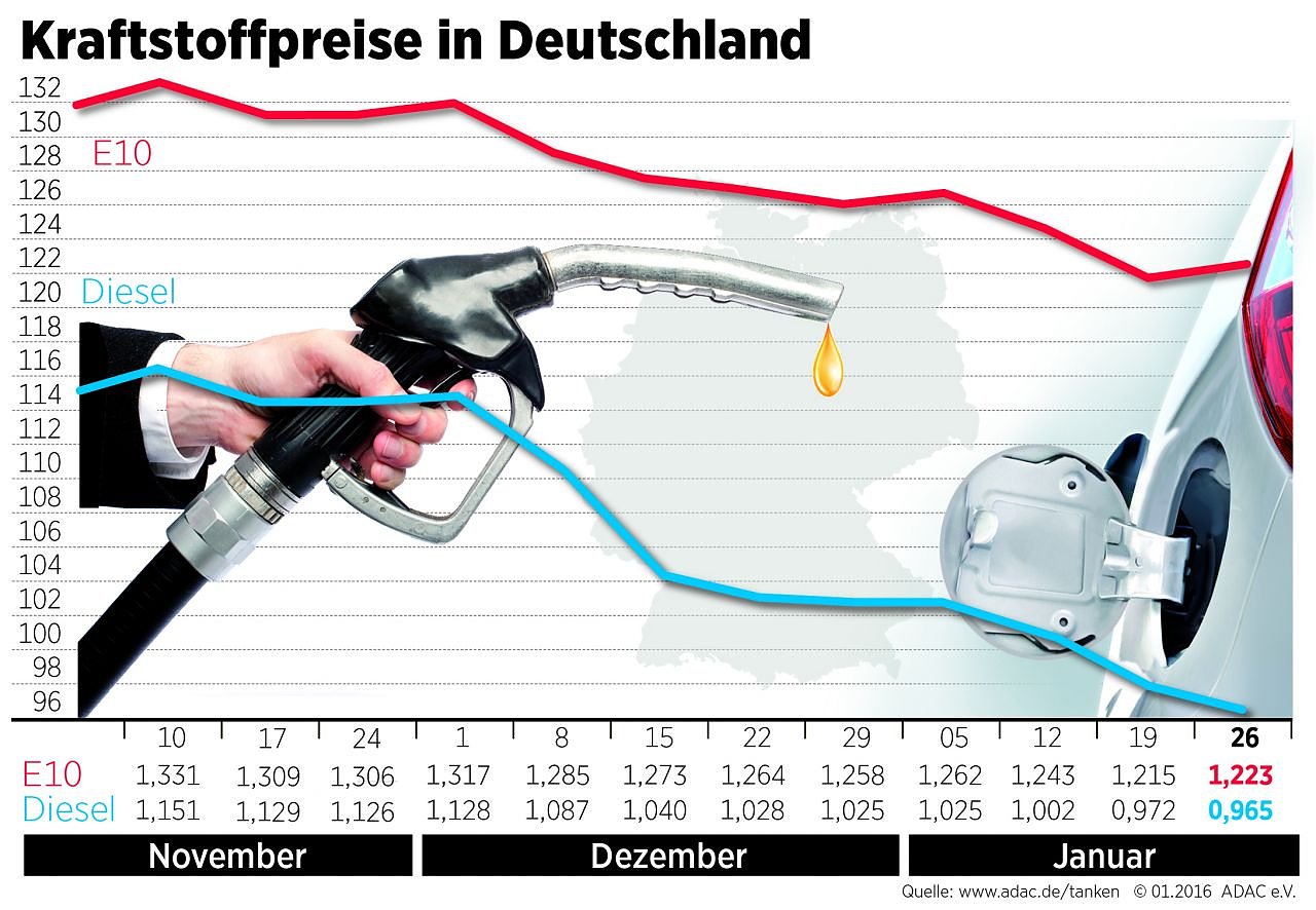 Benzin teurer, Diesel günstiger