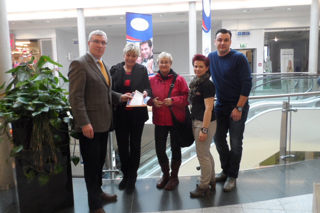 Die Einnahmen vom Geschenke-Einpackstand in der Weihnachtszeit gingen am Dienstag, 2.2.2016 in Form von 4 Centergutscheinen zu je 50 Euro an das Sondershäuser Frauenhaus, welches vom Verein Arche betreut wird.
