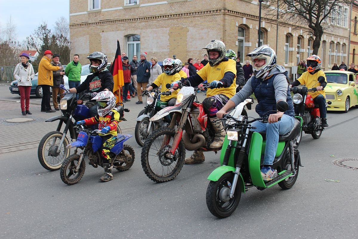 Star des Umzugs war dieses Mal der kleine Valentino vom Motorradclub in Rottleben, mit seiner kleinen Maschine.