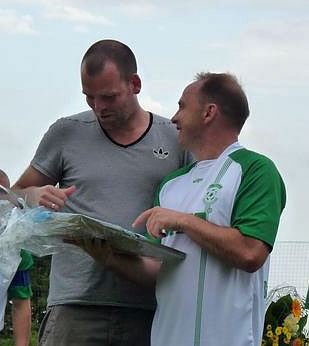 Am kommenden Samstag – zum Heimspiel gegen Weimar – werden Axel Duft und Daniel Menzel übergangsweise auf der Trainerbank sitzen. Hier ein Archivfoto aus dem Jahre 2011, als Axel Duft Daniel Menzel aus der 1. Mannschaft verabschiedet.